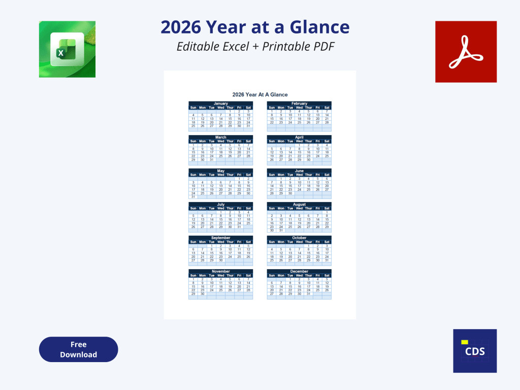 You can download the 2026 Year at a Glance calendar for free using the link below;