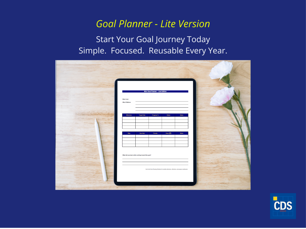 Staying on track with your goals doesn’t have to feel overwhelming. The Goal Planner Lite Version gives you a clean and simple way to stay focused without all of the extras that get in the way. It’s perfect if you’re just dipping your toes into goal planning or want a reusable sheet you can return to all year long.