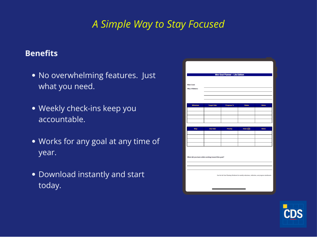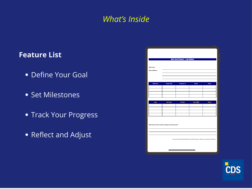 - Perfect for beginners: A great way to try goal planning without committing to a full workbook.